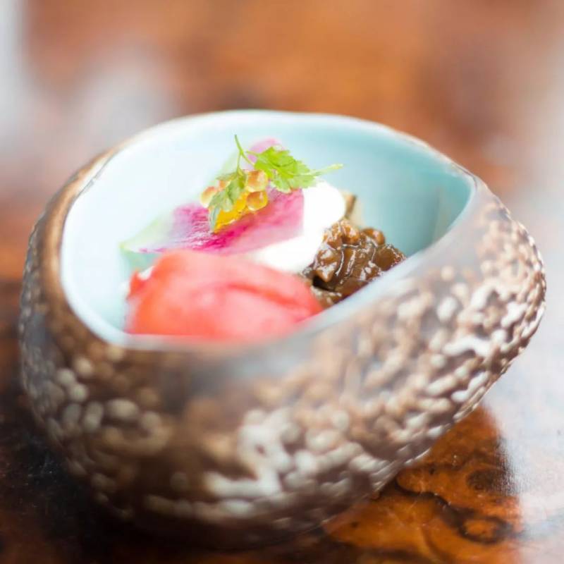 这款布拉塔芝士为主的前菜,是整个菜单中的亮点,不仅成色十分漂亮,而且味道层次丰富。