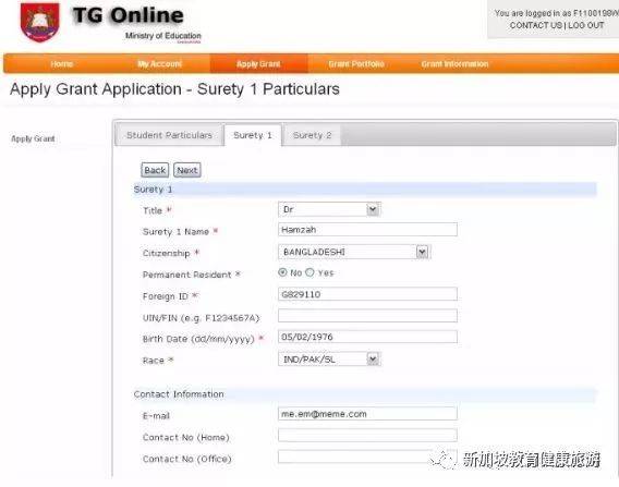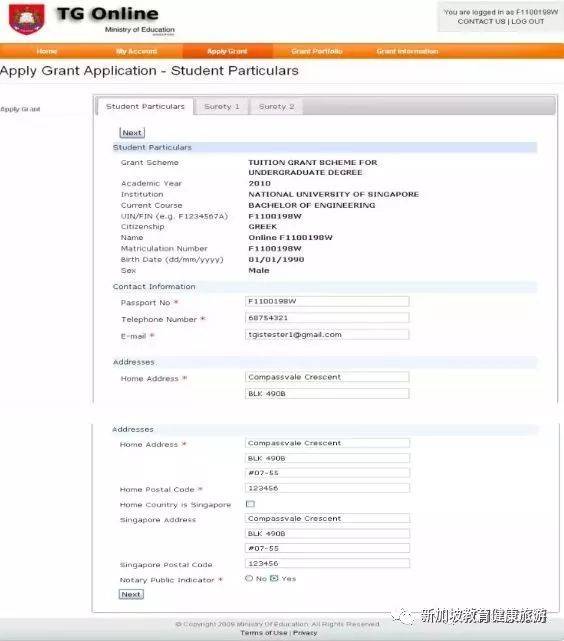 登录TGonline账户之后。点击“Apply Grant”进行申请。详细填写个人信息,护照号,手机,地址,邮箱等信息。