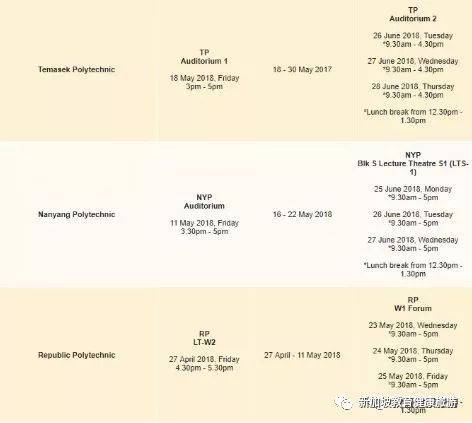 新加坡理工学院 Singapore Polytechnic 义安理工学院 Ngee Ann Polytechnic淡马锡理工学院 Temasek Polytechnic南洋理工学院 Nanyang Polytechnic共和理工学院 Republic Polytechnic