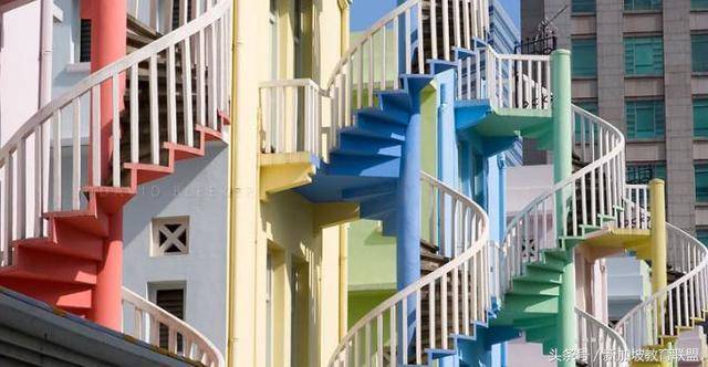 当当当当~这个旋转楼梯是不是非常的好看!想知道在哪里可以找到吗~嘻嘻,其实这排楼梯就位于Bugis Village里麦当劳的正后方, 雅柏熟食中心的斜对面哦。不用刻意找角度, 这排楼梯本身就已经带着浓浓的复古风情了,拍出来一定很有感觉~喜欢撞色的小伙伴还可以尝试其他有趣的拍法哦。