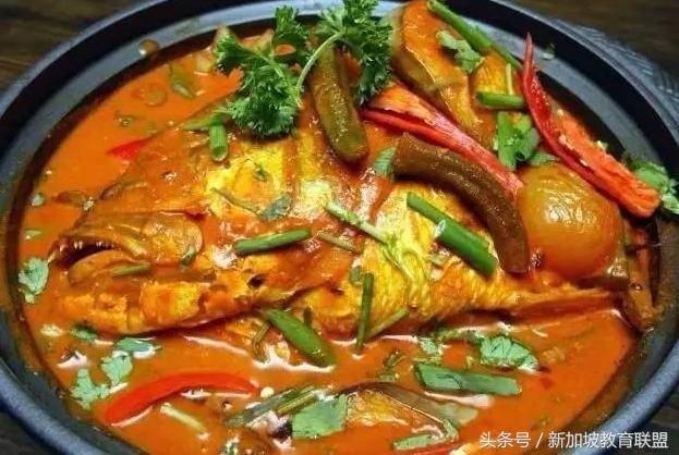 咖喱鱼头是最具新加坡风味的美食代表之一,是另一道本土自创的佳肴。先由本地的印度人开创,煮给爱吃鱼头的华人吃;渐渐的,马来人和印度人也开始爱上这道菜肴,并自创不同的式样,咖喱鱼头的名声便开始广为传播。早年,马来人和印度人都不太吃鱼头,最初制作者是移居新加坡的 Malayalee 人(来自南印度卡拉拉邦的印度族裔),用咖喱焖煮鱼头和蔬菜,以取悦华人的胃肠,堪称那时候的穷人美食。华人吃咖喱鱼头,喜欢搭配蔬菜和肉;印度人也惯吃米饭,另搭配帕帕丹和印度泡菜。历经世代的传承、改良与修正,成就此狮城经典美食。