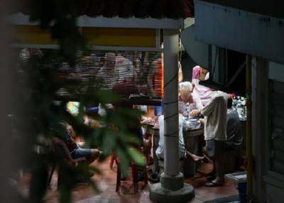 媒体记者在(5月28日)9时许实际走访时,上述地点约有20人聚集。据观察,众人分开三四桌围坐,一些人在下棋,一些则在玩扑克牌。