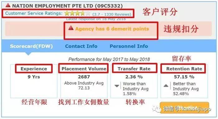 此外,上面的客户评分也是最近劳工部的新功能,可以让雇主知道其他客户对这个中介的态度,评分太低就说明中介并没有好好服务好客户,至少没有说:亲,给个五分好评哟。此外中介如果违规的话也会被劳工部扣分,扣分太多也说明中介的办理流程有违规。