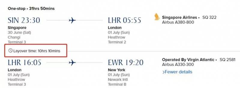 要知道,目前全世界还没有从新加坡直达美国纽约的航线,基本都需要转机一到两次,耗时20多个小时乃至30多个小时!