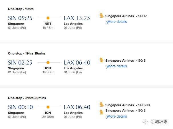 (从新加坡飞洛杉矶,目前也都需要转机)