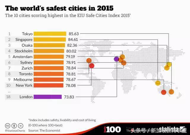 “经济学人”智库发布“安全城市指数”,新加坡在2015年全球安全城市整体排名中位居二。2015年10大安全城市,依次是东京、新加坡、大阪、斯德哥尔摩、阿姆斯特丹、雪梨、苏黎世、多伦多、墨尔本和纽约。
