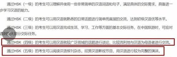 而根据汉语考试官网显示,通过HSK(五级)的考生可以阅读汉语报刊杂志,欣赏汉语影视节目,用汉语进行较为完整的演讲。词汇量要求仅仅是2500!