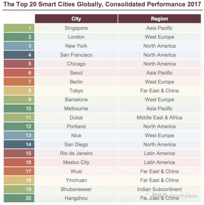 根据榜单显示,此次新加坡打败了伦敦,纽约,旧金山等强力对手,成为了各地区智慧城市综合第一名。首尔、墨尔本成为了亚太地区的第二和第三名。