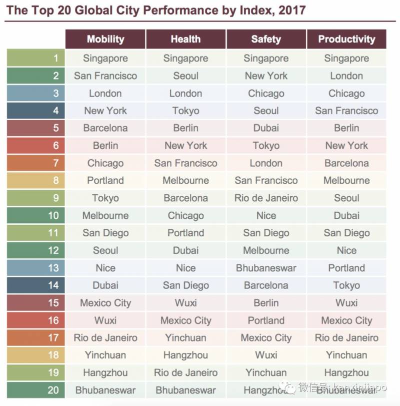 此次榜单的评选分别从,交通,健保,安全和生产力四个方面进行全方位考量。