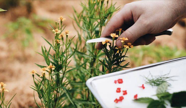 餐馆里的菜色秉承了自然的主旨,菜色中用的都是自己种植的花草为配料,味道自然是特别新鲜。因为有了鲜花和绿叶的装点,这里的菜色摆盘都十分漂亮。