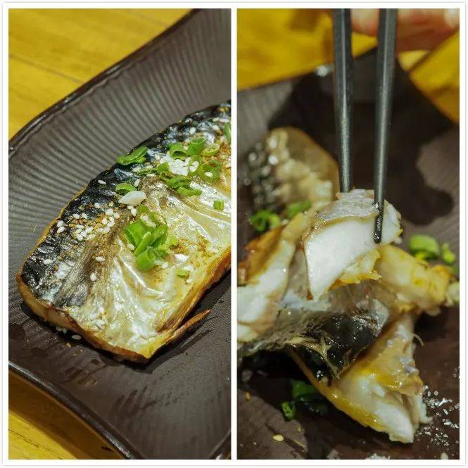 另一个套餐挑选了新鲜鲭鱼作为搭配,用日式盐烤的方式来烤制。外皮微酥带有股焦香气,肉质嫩白有油脂,一点都不干柴。