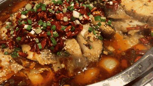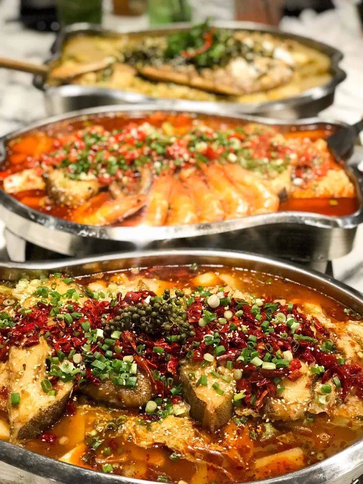 来这里,首推的是深海鳕鱼搭配原版麻辣汤底。看着深海鱼在烤鱼盘中加热翻滚,汤汁慢慢的进入到嫩滑的鱼肉当中。