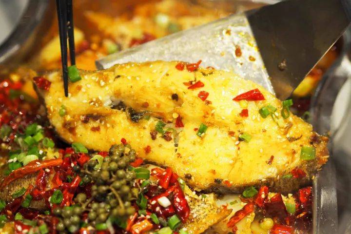 不经油炸的鳕鱼肉雪白嫩滑,煮后吸入了特调的汤汁,满口都是鲜香麻辣,越吃越过瘾,越辣越想吃。鳕鱼鱼皮满满的胶原蛋白,在文火上越煮越入味。