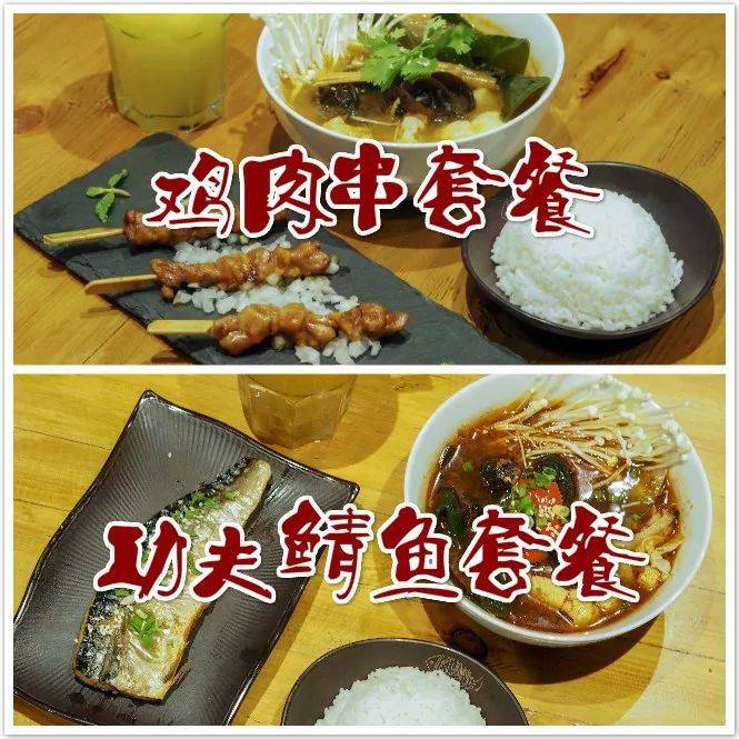 特别推出了鸡肉串套餐和功夫鲭鱼套餐(S$15.90/套)套餐中搭配不同口味的冒菜以及特色饮品。