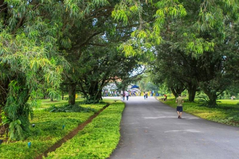 总统府内有一条主干道,干道两侧栽种著一排遮天蔽日的高大热带树,绵延2公里长,同时映入人们眼帘的是一片纵深在千米以上、修剪整齐、青翠碧绿的大草坪,极目远眺,视野极为开阔,气势恢弘。