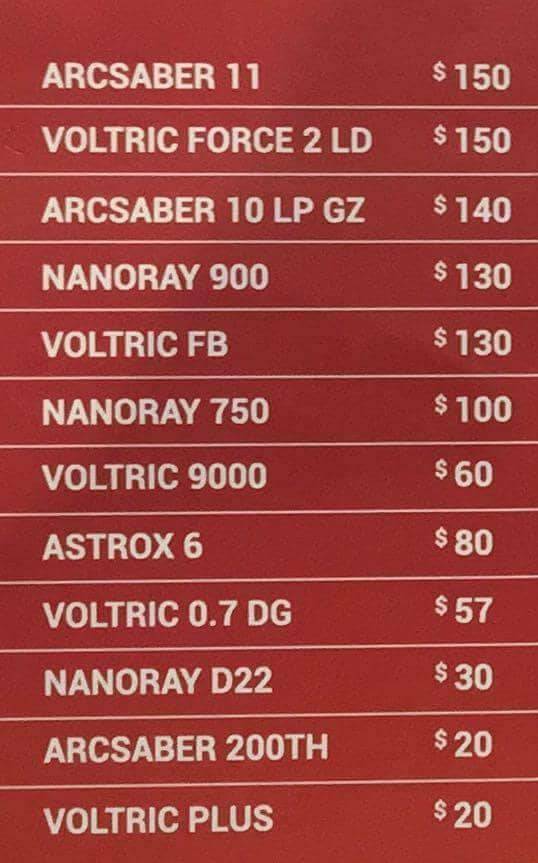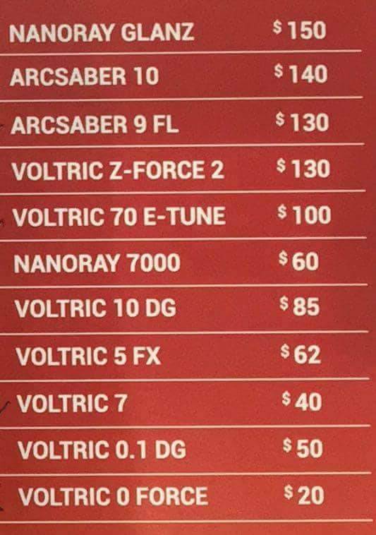部分型号的价格如下