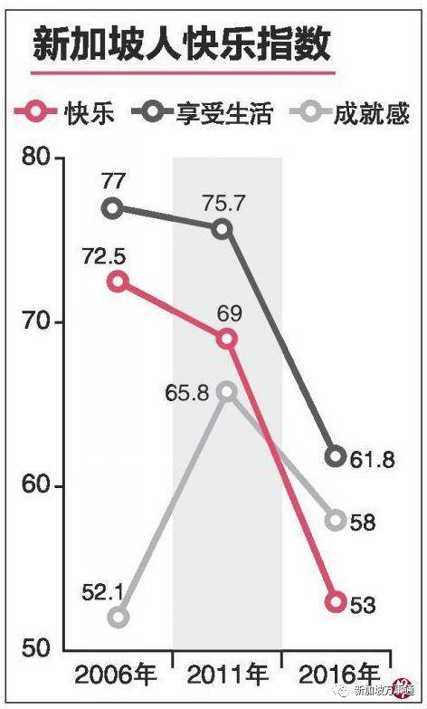这不,新加坡国大商学院的一项调查发现,比起2006年和2011年,2016年接受采访的新加坡人在快乐、享受生活和成就感指数三方面都下降。新加坡人在近10年来越来越不快乐,更不重视享受生活,而且成就感也减少了。各种生活开销和医疗费用是令大家最不满意的事。