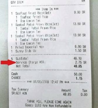 报道引述一名不愿具名的消费者透露,她和同事到平常熟悉的吉隆坡市某餐厅用餐,不过结账时发现,虽然账单上没有征收6%消费税,却出现之前从没征收的6%服务费。