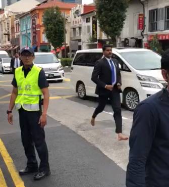 印度总理莫迪近日到新加坡展开国事访问。 FB流传一则视频,莫迪的官车周六开往牛车水中心地区的佛牙寺龙华院(Buddha Tooth Relic Temple & Museum),吸引路人在旁围观。而莫迪的保镳穿着西装,却赤脚在路上跑动,尾随莫迪的官车。