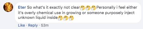 其他则认为西瓜也许被注射入不明液体,或西瓜过熟了。
