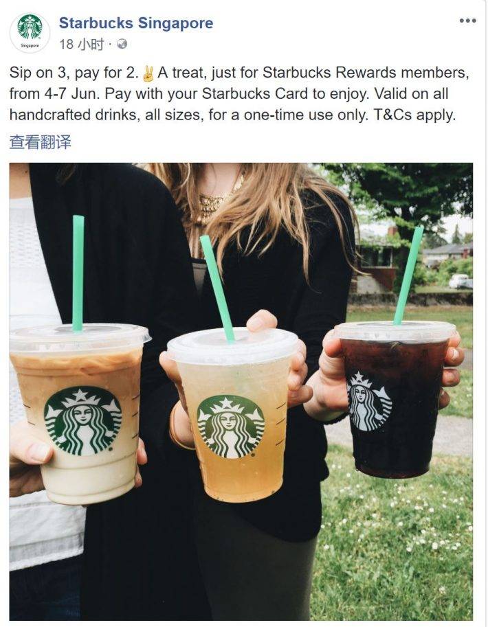 星巴克本周促销活动:买二送一,不限口味及SIZE!