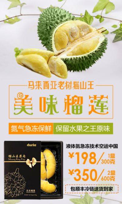 真正的马来西亚老树猫山王果肉,氮气速冻,300克/盒