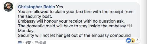 司机赶紧打了个急转弯,把女佣送到了正确的入口。印尼大使馆也替女佣给司机支付了车费。