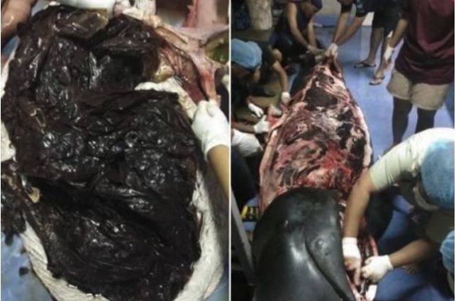 这些袋子使鲸鱼无法消化或吃下任何营养食品,在死之前还吐出了5个塑胶袋。