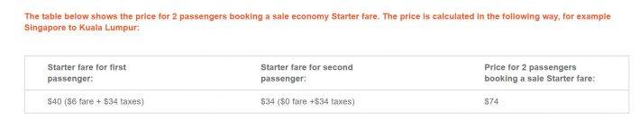 第二位乘客机票免费S$0机票钱+S$34税费=S$34