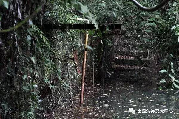 花柏山下的废弃池塘看起来像是游泳池,又像是蓄水池。据国家文物局研究员介绍,该团队在研究新加坡旧地图时发现这一带有三个蓄水池,但在80年代之后的地图却再也没有标明了。这个废弃的池塘大约有三个羽毛球场大,水面布满枯枝落叶,看起来早已经年失修。