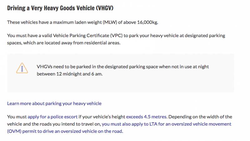 陆交局的One Motoring网站显示,高度超过4.5米或重量超过80吨的大型罗厘,需要辅警(Auxiliary Police Officer)护送。