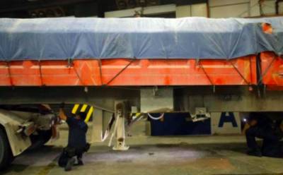 媒体记者跟随移民与关卡局人员前往兀兰关卡的检查站,发现一辆载重上限达39吨的罗厘,竟超载了11吨沙石,被拦截检查。