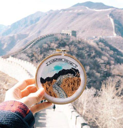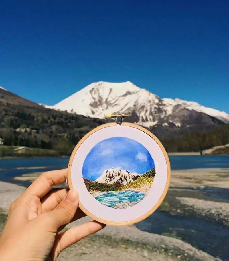 其实,旅游拍照发文已经很普遍了,这里我们要说的一位菇凉,她不用相机,而是用刺绣来记录所到过的风景!