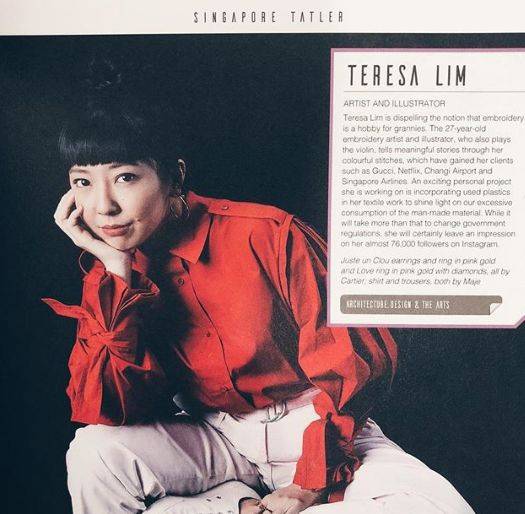 这位刺绣功夫非常6的女孩,就是来自新加坡的Teresa Lim: