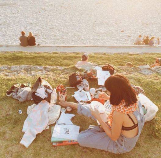 Teresa 某次在澳大利亚伯斯旅行的时候,发现了美丽的日落,正想要拍下时,却发现相机没电了,然后她就看了看身边有什么可以记录这美好的日落时,就看见旁边的针线......