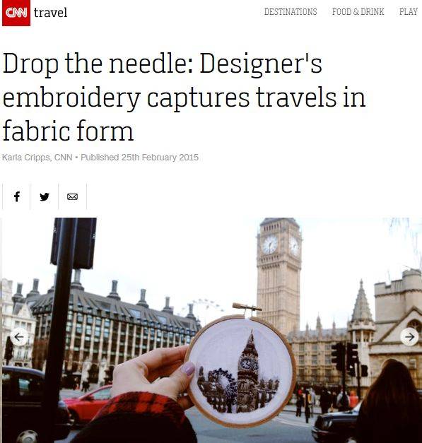 (CNN美国新闻网也报道了Teresa 用刺绣取代相机记录各国风景)