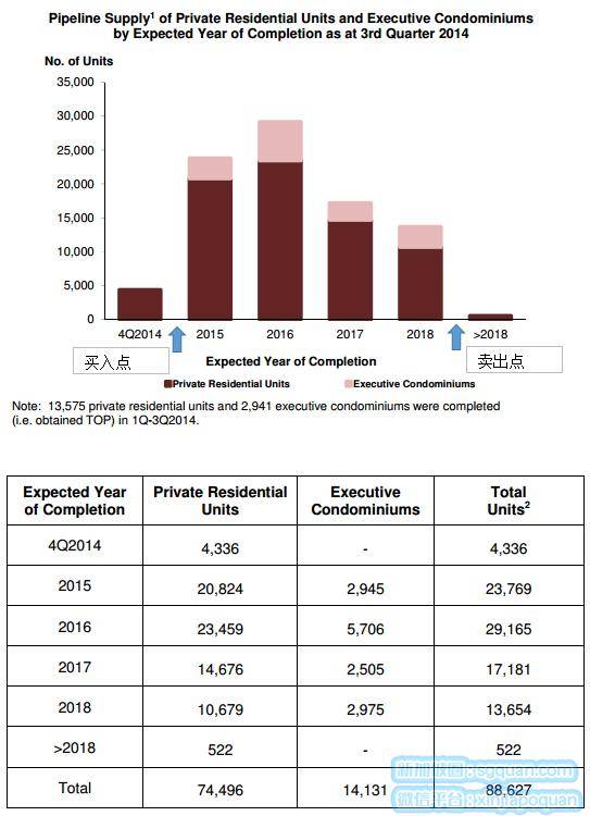 广告对于我们买家而言,无法影响更无法控制政府的政策,可以做的是,顺着政策的方向,搭个顺风车。结合第一张表和第二张表,可以看到一个现象:在市场上新房较多的季度,二手房的交易量会被新房的交易量蚕食;而在新房较少的季度,二手房的交易量则会和新房不相上下。结合新加坡的另一个政策:新公寓在购买后的4年内如果出手,将需要缴纳一个高额的惩罚性印花税,4年后出手则不用缴纳。公寓修建的时间也算在4年以内,政策的目的是防止投机性的炒房。也就是说,2014年底购买的公寓,到适合卖的2018年底,刚好是市场上新房供应很少的时候。