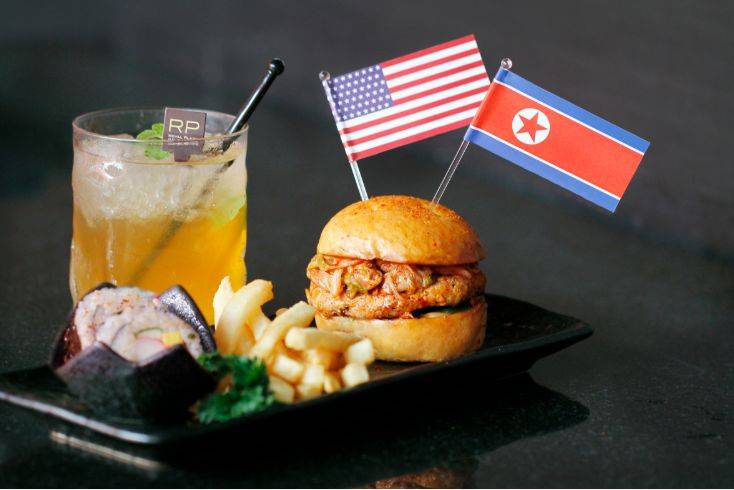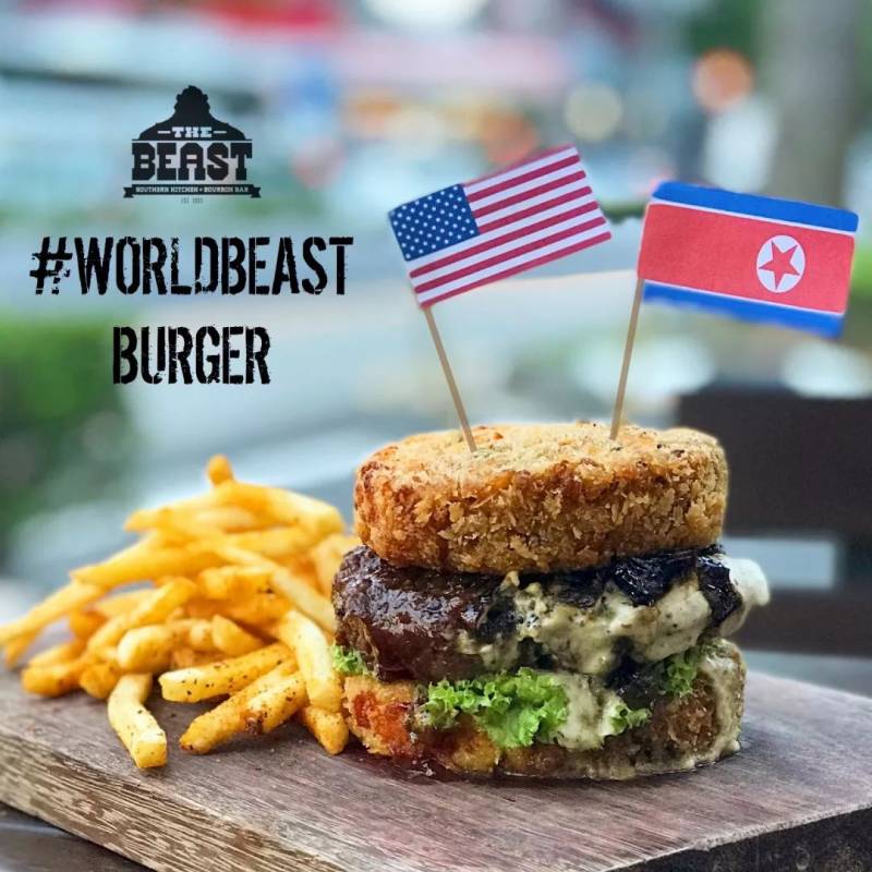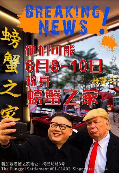 这几天,新加坡全岛的餐厅都很high,卯足了劲儿硬蹭热点,纷纷推出“特金cp”限量版美食,什么汉堡加泡菜、山寨真人秀、给总统亲笔信、基情鸡尾酒……集体作妖的节奏啊!!