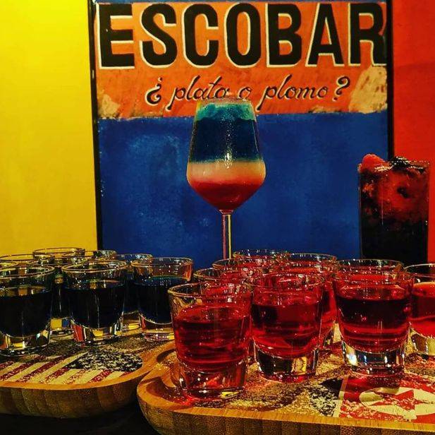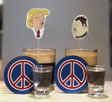 为了特金会,连酒吧都不甘示弱,推出了蓝色的“特朗普”鸡尾酒,和红色的韩国烧酒。为什么是这两种颜色呢???请酒吧领导人出来说说。