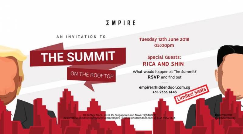 这个酒吧玩得有点大,他们决定在自家屋顶上搞个山寨版峰会…….本来抱着宏大的梦想想要邀请来特金cp,不过他们放弃了(应该是绝望了),最后决定邀请个新加坡DJ来“会晤”…….好像这档次差得不是一丢丢啊!