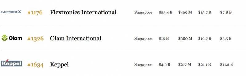 这个全球排行榜以挂牌公司为对象,代表新加坡入榜的伟创力国际(Flextronics)在纽约挂牌,是新加坡注册公司并且企业总部设在新加坡,而中国航油则是新加坡股市的挂牌公司,并以新加坡为总部。