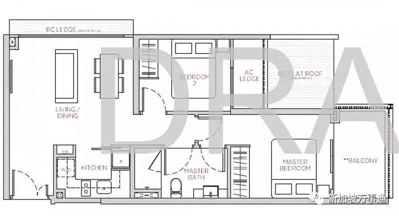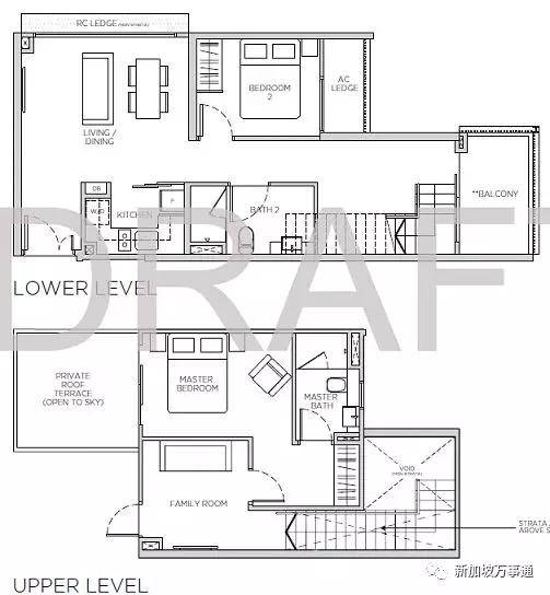 顶楼的两卧跃层复式户型,两室一厅+家庭房,面积106平米(1141平方尺),楼下客卧,楼上主卧+家庭房,定价176万8千新币,最后一间。