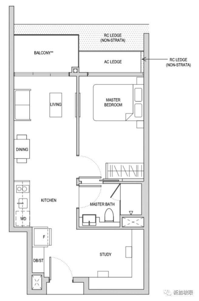 一居室或一居室+ 书房户型:套内面积44平方米(474平方英尺)至64平方米(689平方英尺),整套售价$84.8万起;