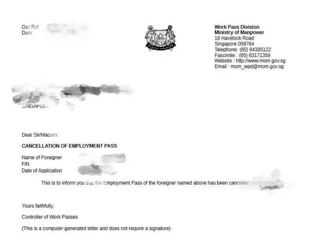 新加坡眼注:一般取消EP的信件长这样,第二页就是作为白卡使用的。