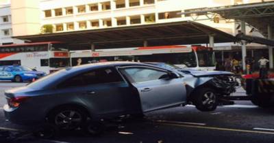 广告轿车继续往前冲,把当时走在行人道上的黎智畅撞倒并抛飞至最右边车道。黎智畅脑部受重伤,身体多处骨折。
