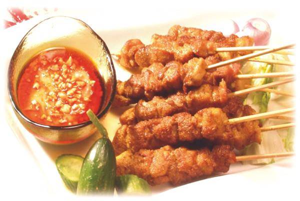 香味四溢的鸡肉沙爹是新加坡著名的马来美食,一只只鸡肉串经火炭一番烧烤后,再配上饭团、切片鲜黄瓜和洋葱,就是一道可口美味的马来小吃。沾上精心调制的黄梨花生酱,称得上绝顶美味,是本地人和游客的最爱美食之一。