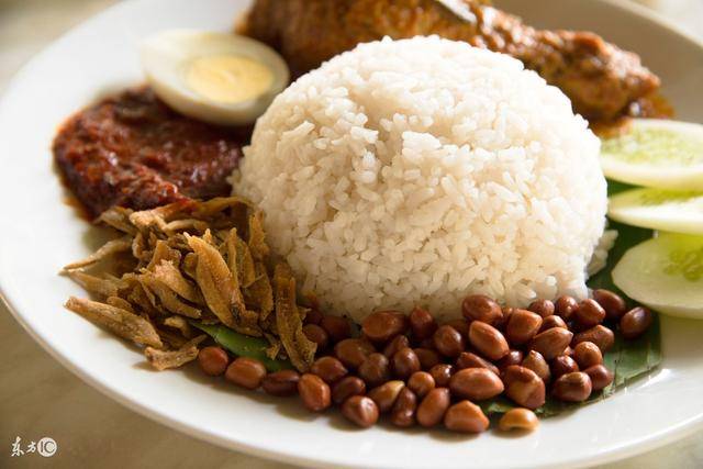 马来椰浆饭是最具代表性的马来美食之一,用椰浆和米饭混合煮制,得到的米饭自然清香扑鼻,然后用油纸或香蕉叶包裹,吃的时候再配上炸鱼、黄瓜和用辣椒酱、虾米、香料做成的辣椒酱。现在配料也变得花样繁多,煎蛋、香肠、炸鸡等等都成为了马来椰浆饭常见的搭配。马来椰浆饭很多地方都可以找到,价格每份5、6元新元。
