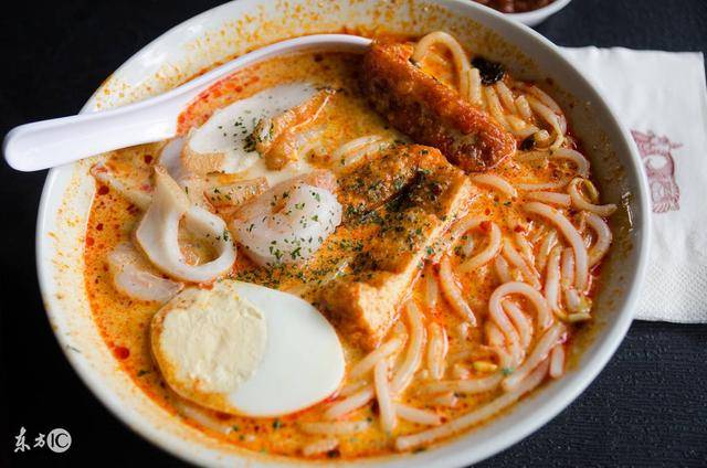 叻沙是娘惹美食的一种(娘惹菜是中国菜与马来菜融合而成的一种独特的菜系,自成一派)。叻沙是在咖喱汤汁中加入椰浆、辣椒、虾米、蛤肉、鱼饼和油豆腐等食材制成汤头,然后再加入细白的米粉制成。这种美食味道确实很独特,鲜、呛、辣俱全。