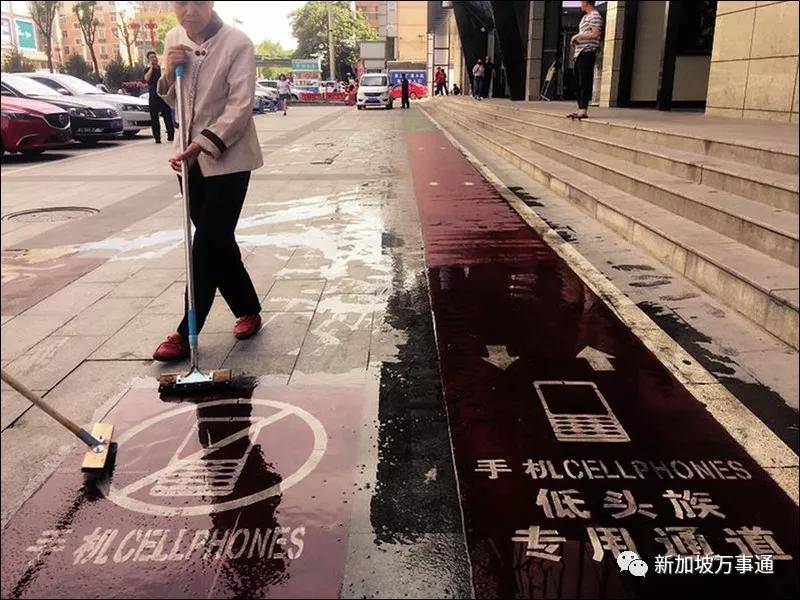 而为了方便“低头族”这一人群,大家真的是操碎了心啊~中国西安一间商场竟然在商场外的街道上增设了一条PU材质的“低头族专用通道”,宽道大约一米,有红绿蓝三种颜色。