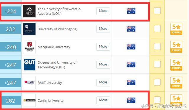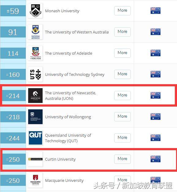 在最新颁布的这项QS世界大学排名中,新加坡PSB学院的合作大学澳大利亚纽卡斯尔大学在世界大学排名中跃居第214位,科廷大学位居世界大学排名第250位,詹姆斯库克大学位列369名,新加坡Kaplan的合作大学莫多克大学在591-600名。